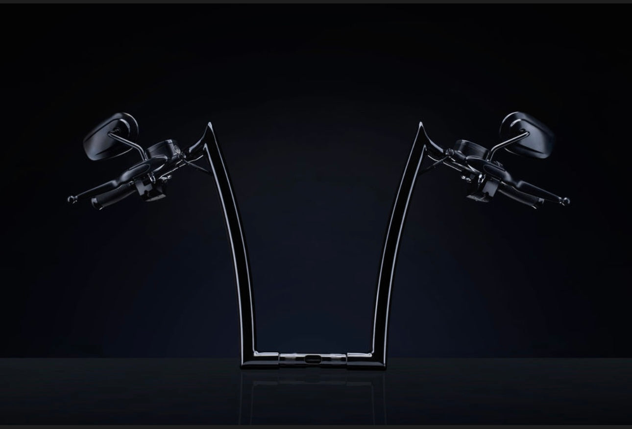 Introducing our Diablo Meathook Ape Kit. These bars are 1.5" in diameter and step down to 1.25" to accommodate the stock clamp. Our patent pending Diablo bars sweep forward for a truly sinister look. Designed to be FULLY INTERNALLY WIRED. This means we run the brake and clutch line through the bars along with the control harnesses. Creating a clean look like no other bars on the market today. Available prewired or 100% Plug In Ready with the twist grip sensor included. Innovative and never before seen.